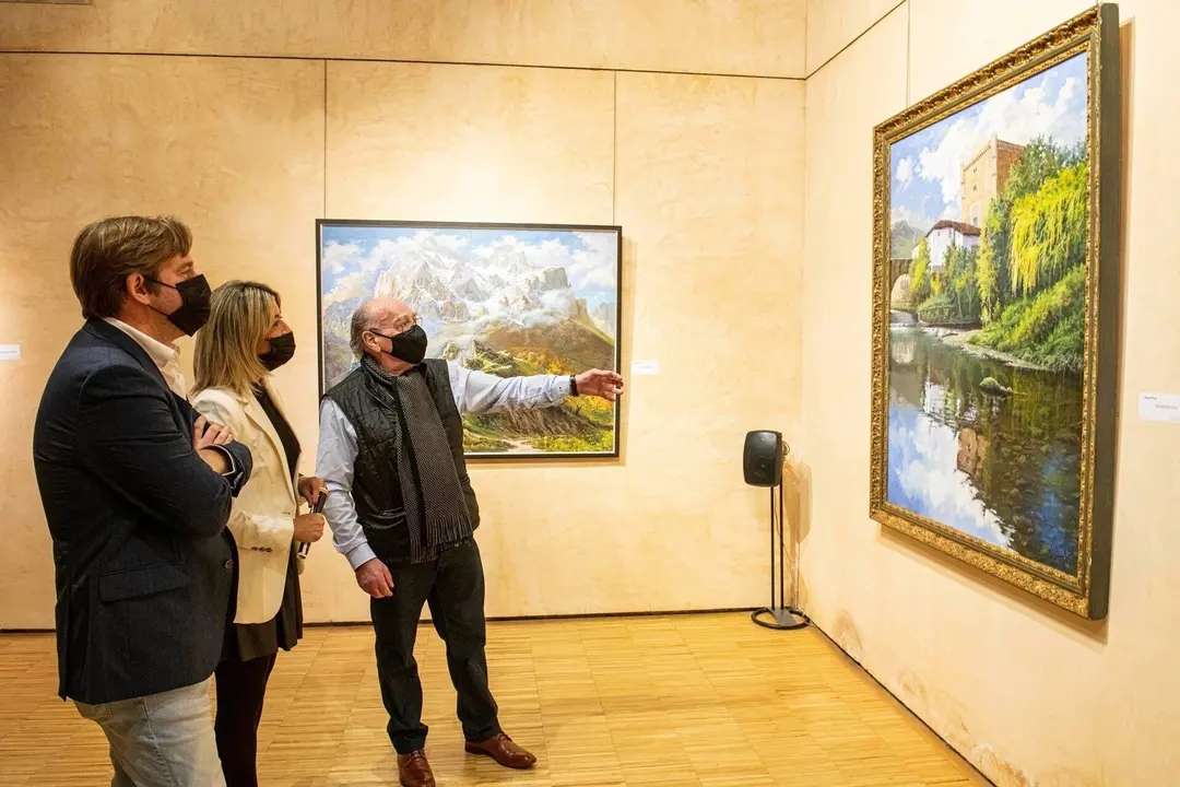 A la inauguración asistieron, entre otros, el alcalde, Pablo Diestro, y la concejala de Cultura, Eva Cobo, que agradecieron al pintor lebaniego que haya vuelto a recalar con su obra en el municipio.