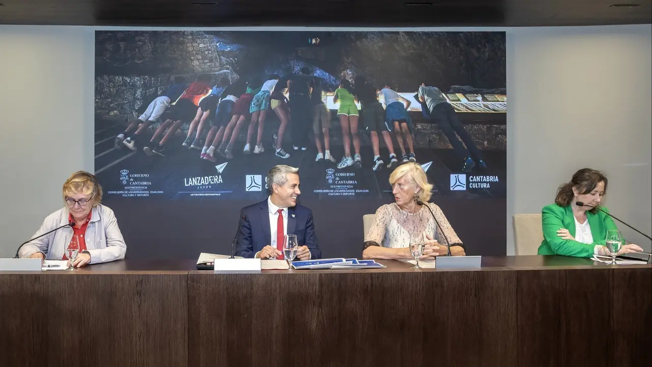 El vicepresidente y consejero de Universidades, Igualdad, Cultura y Deporte, Pablo Zuloaga, y la consejera de Educación y Formación Profesional, Marina Lombó, han presentado este programa para difundir y acercar a los jóvenes en edad escolar diferentes recursos culturales de la región, como la red de cuevas prehistóricas, la programación de los centros culturales y las actividades de los principales museos.