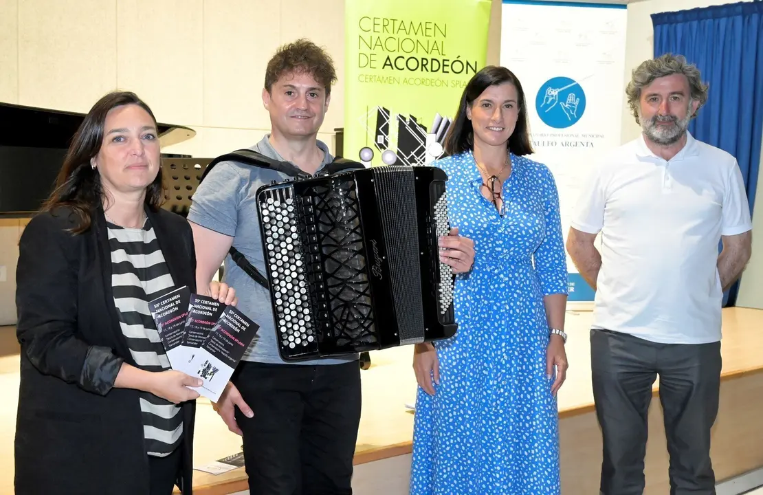 Al acto de presentación de los certámenes han asistido este lunes el director del conservatorio municipal 'Ataúlfo Argenta', Francisco García Álvarez; el profesor de acordeón, Isidro Terán; la alcaldesa Gema Igual; y la concejala de Educación, Noemí Méndez.