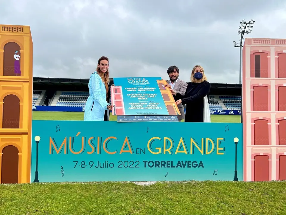 El festival Música en Grande vuelve este verano tras dos años cancelado por la pandemia y se celebrará en el estadio de El Malecón de Torrelavega del 7 al 9 de julio con un cartel protagonizado por Sebastián Yatra, Andrés Calamaro, Mikel Erentxun, Antonio Orozco, Antonio José, Beret, Adriana Proenza, Dvicio y Mora.