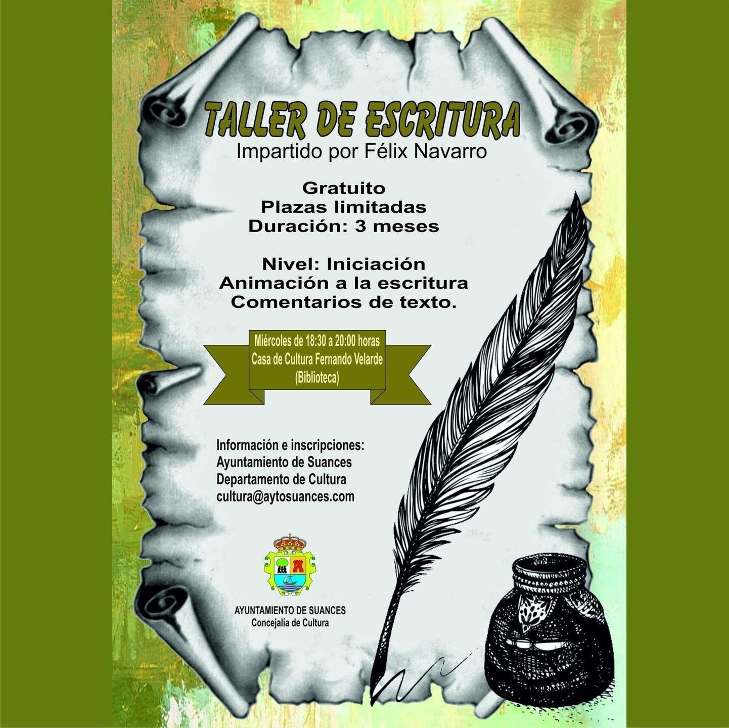 El Ayuntamiento de Suances impartirá en la Casa de Cultura Fernando Velarde (Biblioteca) un nuevo taller gratuito de escritura que se desarrollará los miércoles en horario de 18.30 a 20.00 horas.