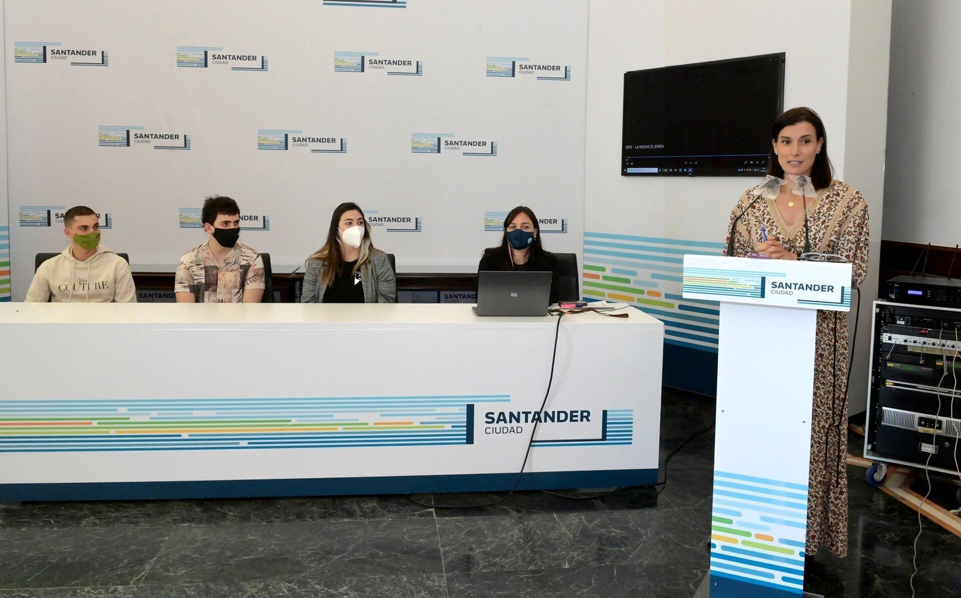 Acompañada de la concejala de Juventud, Noemí Méndez, y de Pedro Miguel, Rubén García y Victoria Ochoa, jóvenes santanderinos que han grabado un vídeo de reconocimiento a las actividades y la cultura joven segura en el Palacio de la Magdalena, la regidora ha destacado que desde el Ayuntamiento se actuó "con rapidez y diligencia" para poner a disposición de los jóvenes las herramientas necesarias para que llenaran su tiempo durante el confinamiento a través de actividades on line.