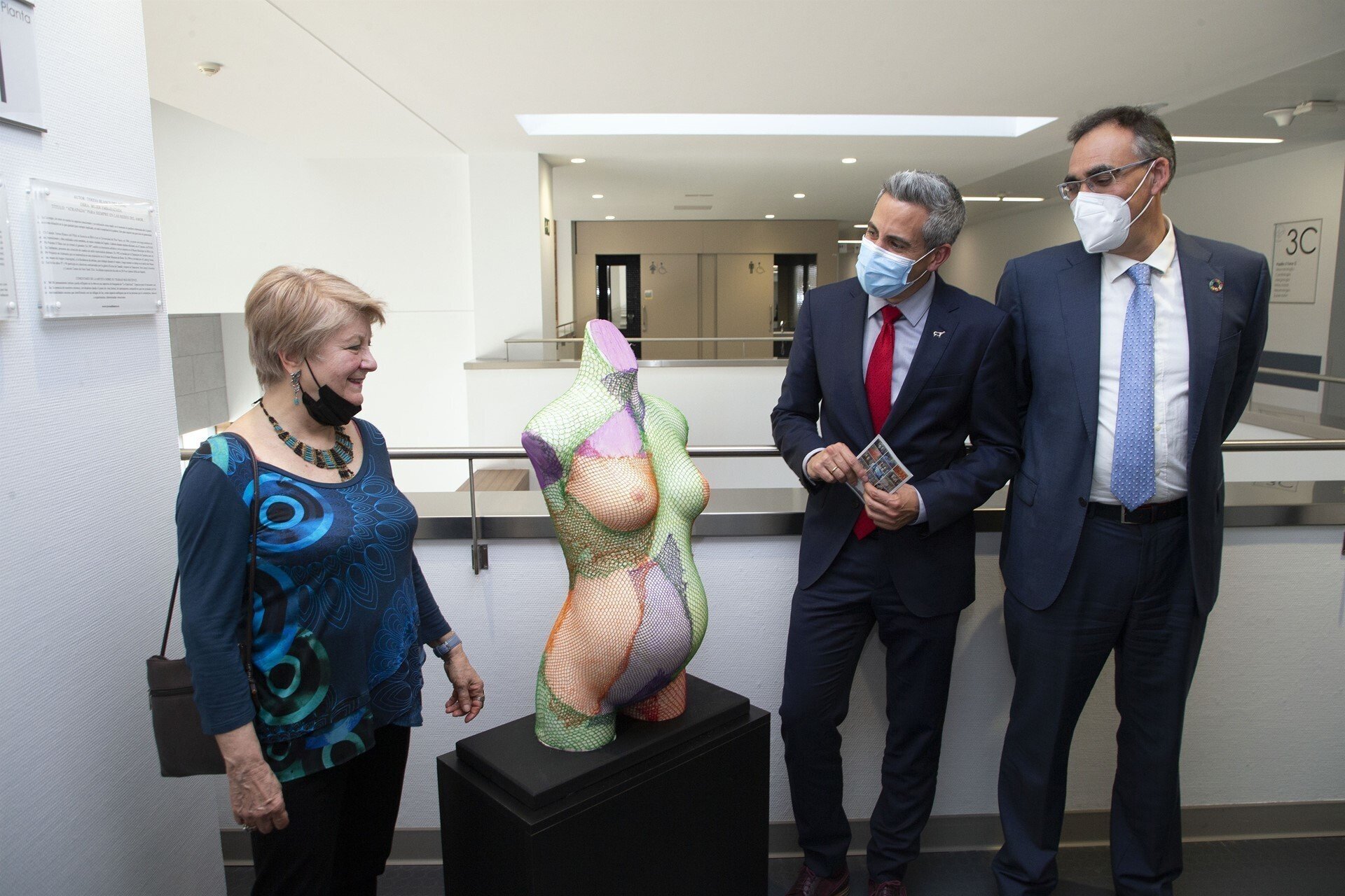 Junto a Zuloaga y Pesquera han acompañado a Teresa Blanco del Piñal en la inauguración de sus piezas la subdirectora gerente y la directora médica de Valdecilla, Beatriz López Muñiz y Rosa Ana García, respectivamente.
