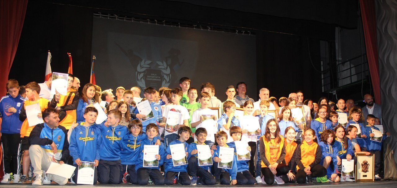 El Trofeo Ebro ha reconocido las mejores actuaciones que han registrado los deportistas campurrianos a lo largo de los últimos meses. Alrededor de un centenar de ellos se dieron cita, hoy, en el Teatro Principal de Reinosa en una gala en la que se entregaron también los premios al “Pundonor" a Jesús García Teruel (atletismo), José Antonio Alonso Camino (fútbol) y Sonia Saiz del Pozo (participante en el Reto Pelayo 2023 que se desarrolló en la Patagonia).