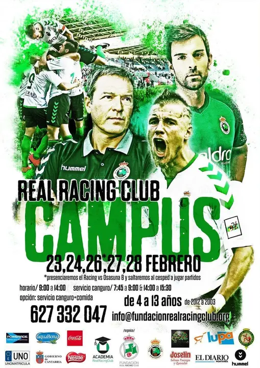 La Fundación Real Racing Club tiene preparado ya el campus verdiblanco de carnaval, coincidiendo con las vacaciones escolares, que se iniciará el 23 de febrero, coincidiendo con el 104 aniversario del primer encuentro que jugó el Racing en su historia. El clinic, que se desarrollará en las Instalaciones Nando Yosu y está dirigido para niños de cuatro a 13 años, estará coordinado por técnicos de la Academia y de las Secciones Inferiores del club. La actividad se llevará a cabo los días 23, 24, 27 y 28 del presente mes y los participantes en el campus de carnaval podrán asistir gratuitamente al encuentro que el primer equipo racinguista jugará en El Sardinero ante Osasuna B (previsiblemente será el domingo día 26) en tanto que, en el descanso, pisarán al césped del estadio para realizar una exhibición ante miles de espectadores. Será, sin duda, una experiencia inolvidable para los pequeños. El clinic se desarrollará de 9:00 a 14:00 horas aunque será posible, a través de la “Opción canguro”, dejar a los niños a las 7:45 y recogerlos a las 15:30 horas –hay disponible, además, servicio de comedor en las propias instalaciones verdiblancas. Y es que la Fundación Real Racing Club quiere facilitar a las familias la conciliación de la vida laboral con el ocio de los niños, a los que también inculcará valores positivos como el trabajo en equipo, el compañerismo y el espíritu de superación. En el campus de carnaval, además del fútbol –hay diseñados entrenamientos, partidillos y liguillas internas, habrá una completa visita guiada a Los Campos de Sport, otros deportes (vóley, béisbol, ultímate…), ludoteca infantil, sala de juegos (pingpong, ajedrez, videoconsola…) y actividades en inglés, tanto dentro como fuera del aula. Los guardametas, por su parte, contarán con sesiones específicas de perfeccionamiento. Todos los participantes tendrán su desayuno a media mañana, en el que no faltarán los sobaos Joselín, y estarán asegurados en tanto que los que se inscriban por vez primera recibirán el kit de ropa deportiva hummel de la Academia Real Racing Club (camiseta, pantalón corto, chándal y calcetines). Los precios del campus de carnaval oscilan entre 64 (para los académicos) y 109 euros, para los niños que se inscriban por primera vez y no dispongan del material necesario- si cuentan con él pero no son alumnos de la Academia la cuota es de 79 euros. Si se desea la “Opción Canguro” hay que añadir un suplemento de 15 euros en tanto que el servicio de comedor tiene un importe de 35. El período de inscripción ya está abierto y es posible formalizar la matrícula a través del correo electrónico info@fundacionrealracingclub.org, el teléfono 627.332.047, o los folletos existentes en las Instalaciones Nando Yosu y El Sardinero (en la tienda oficial y las taquillas). Para que la inscripción sea válida hay que hacer un ingreso o transferencia en la cuenta del Banco Santander a nombre de la Fundación Real Racing Club ES17 0049 5400 44 2116225818 indicando en el concepto el nombre y apellidos, la fecha de nacimiento y el periodo. Ejemplo: JuanDíazGarcía12/03/2010Carnaval