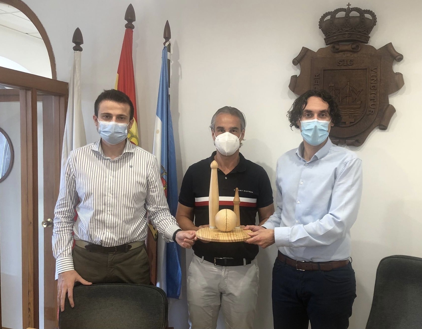 El alcalde de Astillero recibe al campeón de España de bolos, Víctor Cagigas