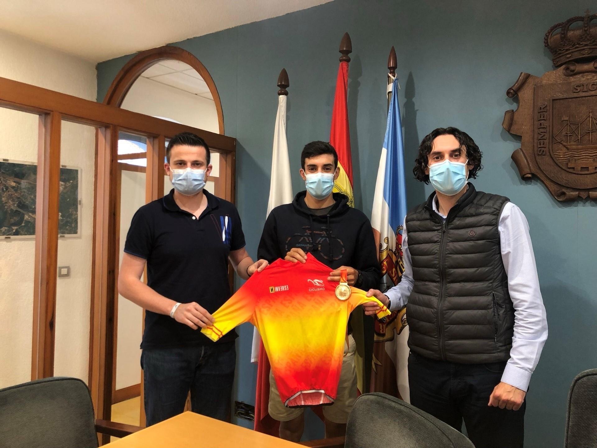 El alcalde de Astillero recibe a Iván Cobo tras ser proclamado campeón de España sub-23 de ciclismo