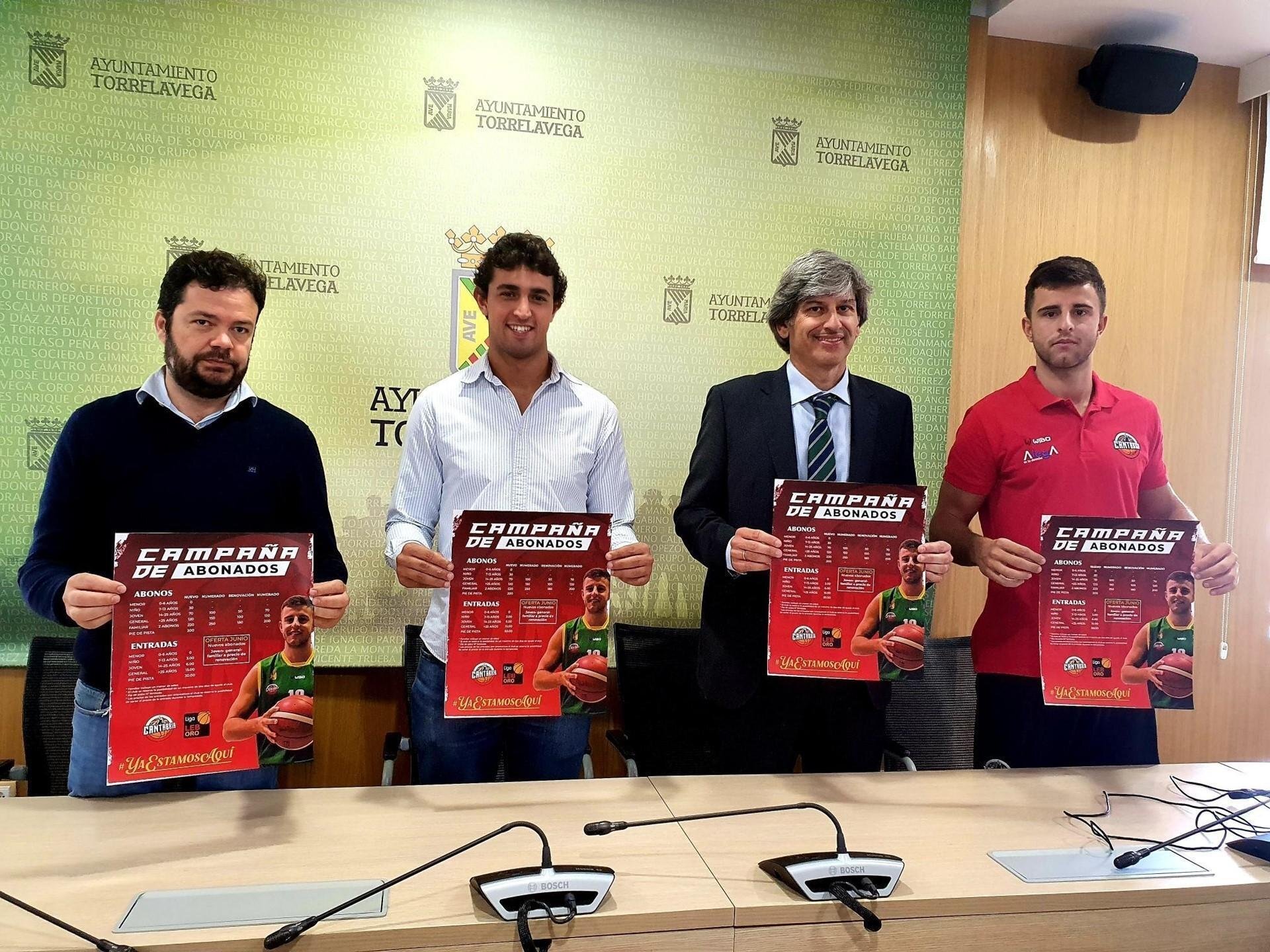 El concejal de Deportes, Nacho González; el presidente del Alega Cantabria, Jorge Ulises Corona; el jugador del primer equipo Álvaro Palazuelos; y el presidente de Veteranos Torrelavega, Luis Merino, han presentado la campaña de socios este martes en rueda de prensa.