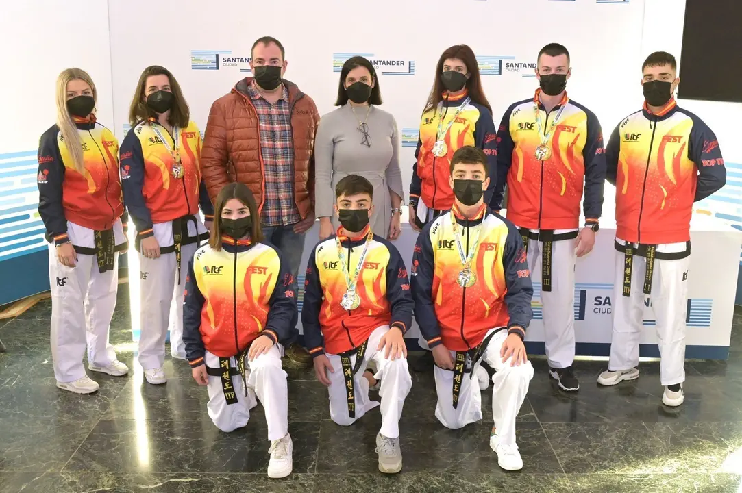 La delegación ha estado formada por Mario Múgica, director del gimnasio Seúl, junto con Rafael Montoya e Ismael Pérez (medalla de oro en combate tradicional por parejas); Valvanuz Ballesteros (medalla de bronce en la categoría de salto); Marta Mateo, Cala González y Carlos Santoveña (medalla de bronce en combate por equipos); y Alejandro Gaitán, Andrea Moya y Laura Salvador. Cala González (medalla de bronce en combate individual) no ha podido asistir al encuentro.