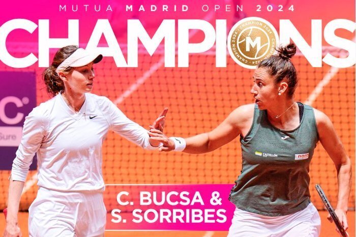 La tenista cántabra Cristina Bucsa y Sara Sorribes han conquistado el título de dobles femenino del Mutua Madrid Open, de categoría WTA 1.000, después de ganar este domingo en la final a la pareja formada por la checa Barbora Krejcikova y la alemana Laura Siegemund (6-0, 6-2).