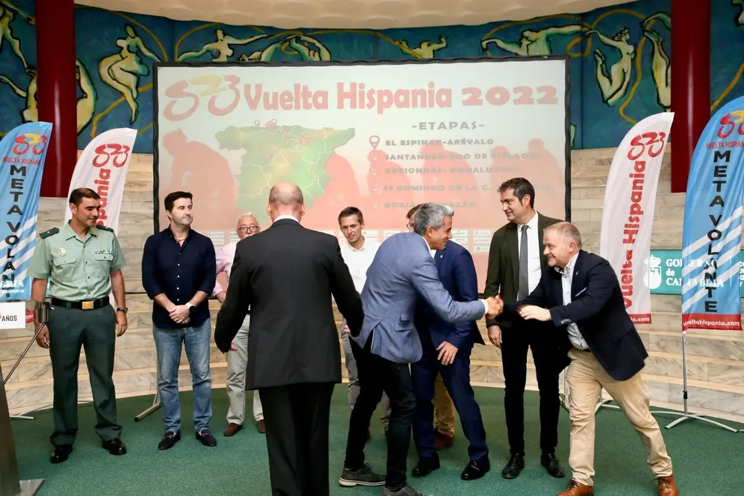 La Vuelta a Hispania ha sido presentada este martes por el vicepresidente y consejero de Universidades, Igualdad, Cultura y Deporte, Pablo Zuloaga; el director general de esta competición, Fermín Trueba; y los representantes municipales de las localidades con salida y meta de las respectivas etapas.