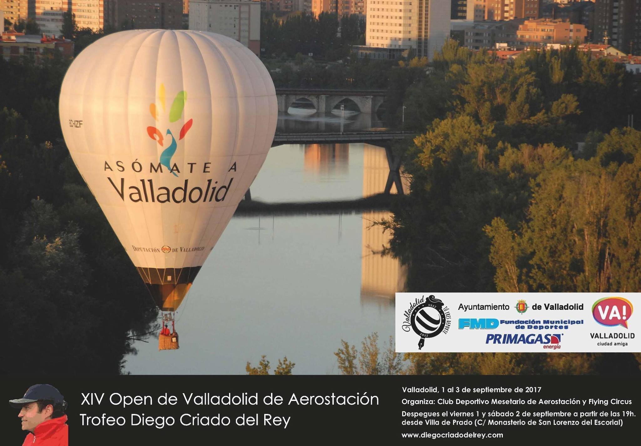 Valladolid acogerá los días 11, 12 y 13 de septiembre el XVII Trofeo de Globos Aerostáticos 'Diego Criado del Rey', organizado por el Club Deportivo Mesetario de Aerostación con la colaboración de Flying Circus y de la Fundación Municipal de Deportes del Ayuntamiento de Valladolid.