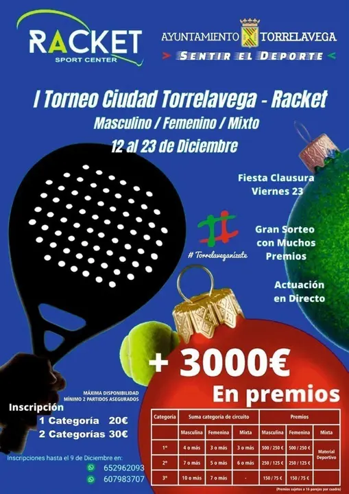 Un total de 150 parejas en categorías masculina y femenina están confirmadas, hasta el momento, en el I Torneo de Padel Ciudad de Torrelavega-Racket, que se celebrará de 12 al 23 de diciembre en las instalaciones del Polígono Tanos-Viérnoles.