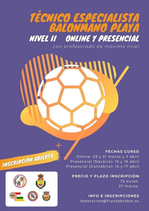 Este segundo curso del año en balonmano playa, tras el de Nivel I, se realizará en modalidad mixta, con parte de la formación online y otra presencial repartida entre Cantabria y Navarra.