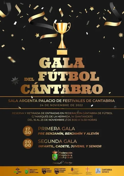 La Gala del Fútbol Cántabro vuelve tres años después y se celebrará el 24 de noviembre para reconocer los méritos logrados por clubees, jugadores y árbitros durante la temporada 2021/2022.