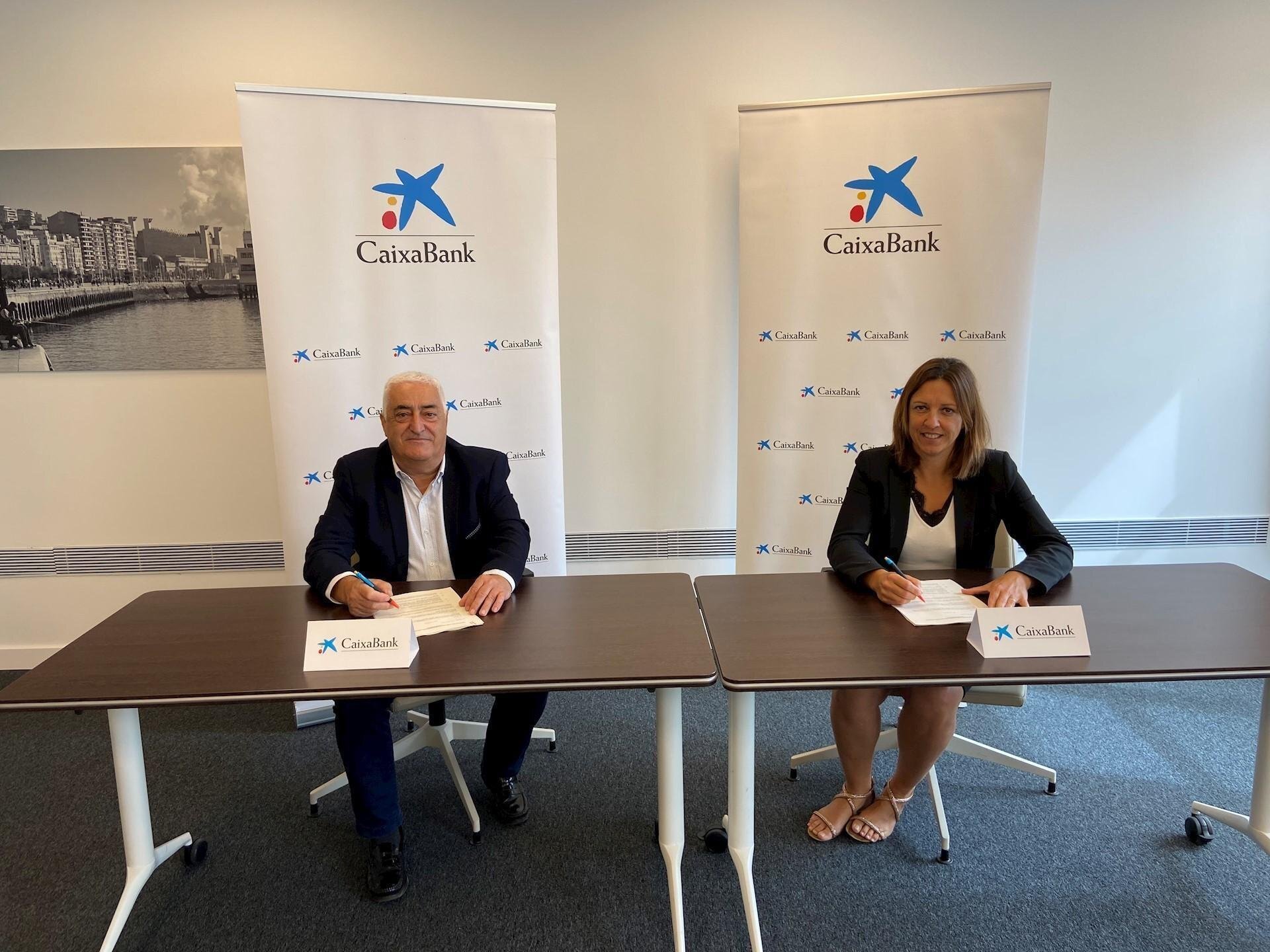 El nuevo acuerdo ha sido suscrito por la directora comercial de CaixaBank en Cantabria y Asturias, Celia Torío, y el presidente de la Federación Cántabra de Bolos, Serafín Bustamante.