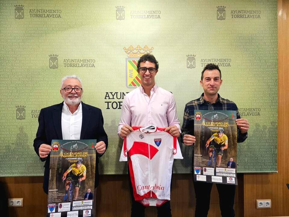 El concejal de Deportes de Torrelavega, Nacho González, acompañado por Iván Aguirre, del Club Cicloturismo Cantabria, y Gonzalo Álvarez, vicepresidente de la Federación Cántabra de Ciclismo, ha presentado este jueves en rueda de prensa este evento.