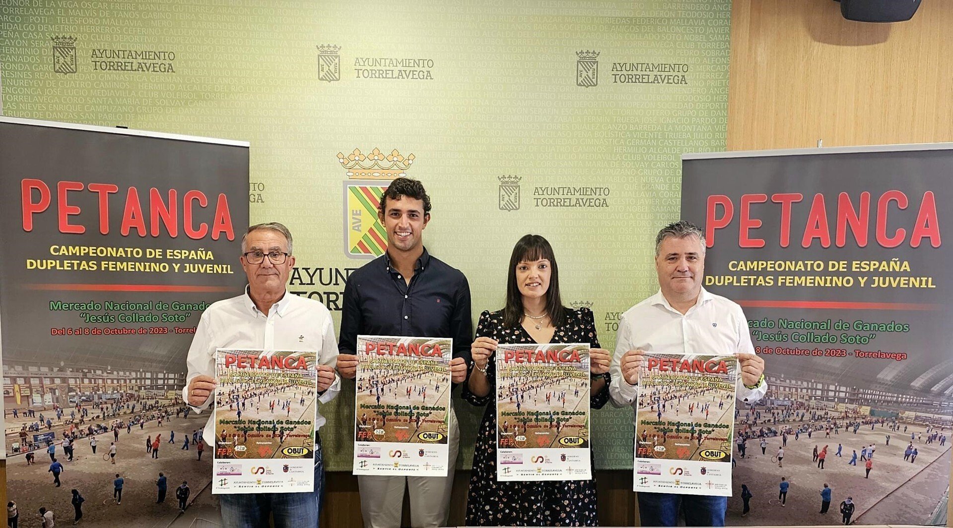 El concejal de Deportes, Nacho González; el presidente de la Federación Española de Petanca, Antonio Pérez; el directivo Mario González y la presidenta de la Peña Deportiva El Lobio, Ana Díaz, han presentado este viernes este campeonato, que "convierte una vez más a Torrelavega en un referente" para los aficionados a este deporte.