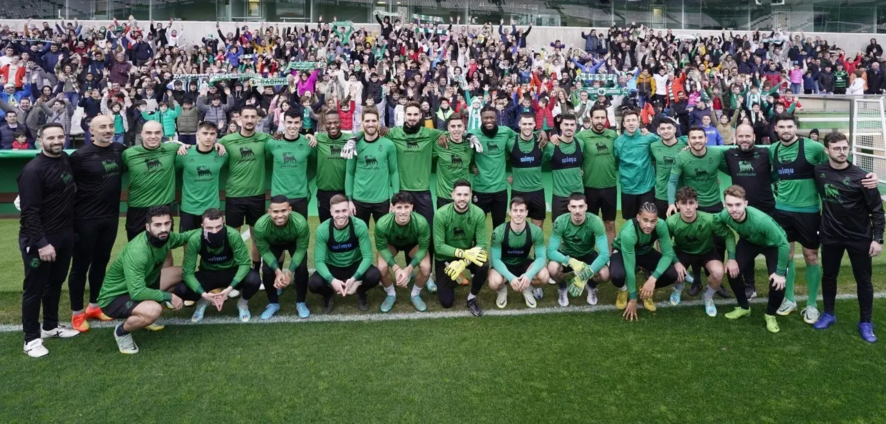 Más de un millar de racinguistas acudieron este sábado, 31 de diciembre, a Los Campos de Sport en la mañana de la Nochevieja a presenciar el último entrenamiento de 2022 realizado por el conjunto verdiblanco.