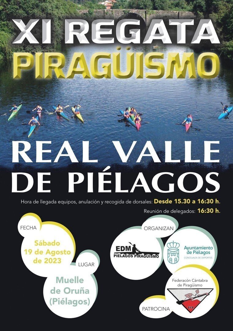 La XI Regata de piragüismo 'Real Valle de Piélagos' otorgará subvenciones de 60 euros para los equipos o escuelas de Cantabria, cuya cuantía será de 80 para las de otras comunidades, si bien para beneficiarse de las mismas deberán participar en la prueba, al menos, 5 regatistas por equipo o escuela.