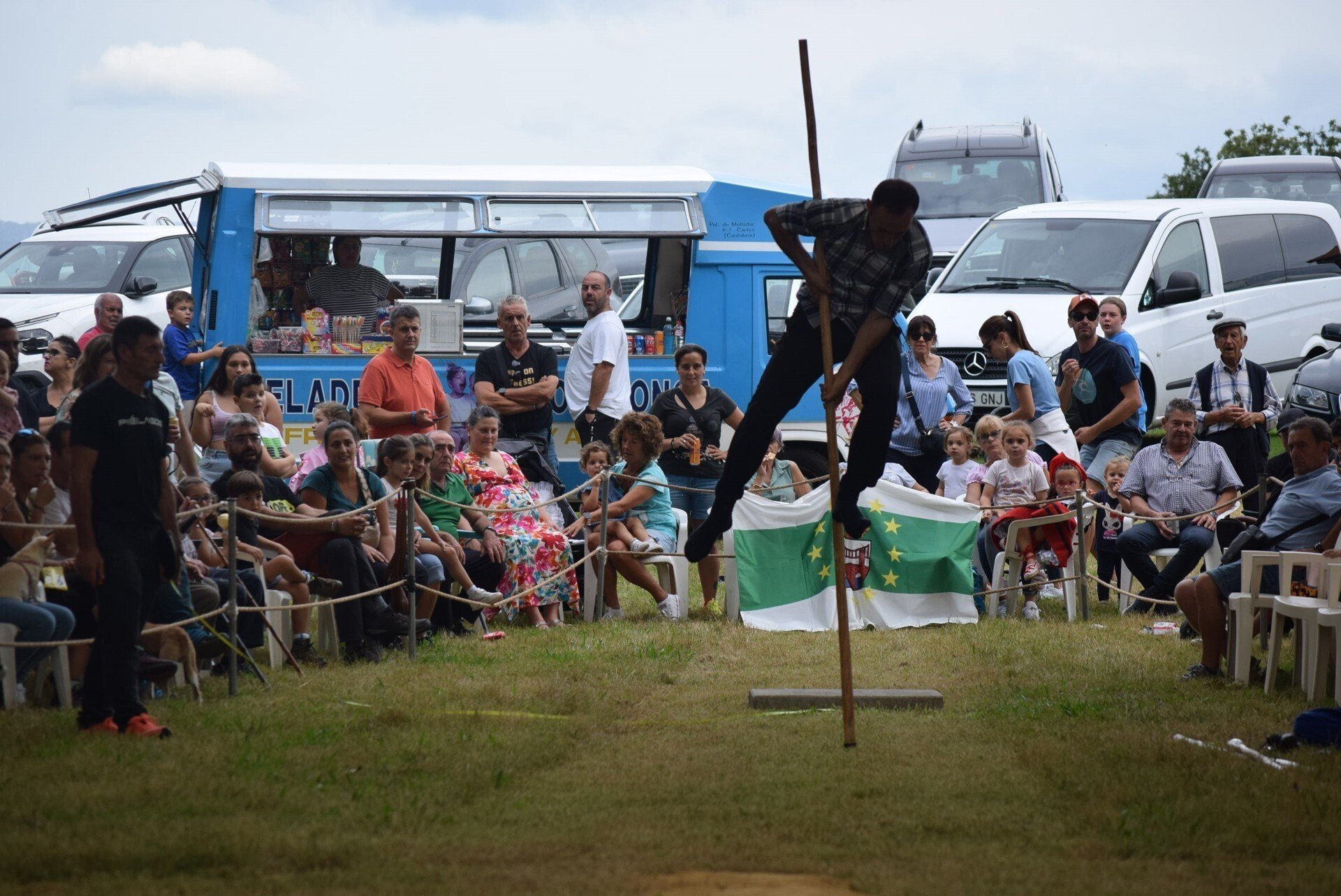 Óscar Gómez y Daniel Pérez se proclamaron este domingo vencedores del concurso de salto pasiego de la Virgen de Valencia 2023, disputado por un total de 10 participantes en la campa anexa al Santuario de Vioño.