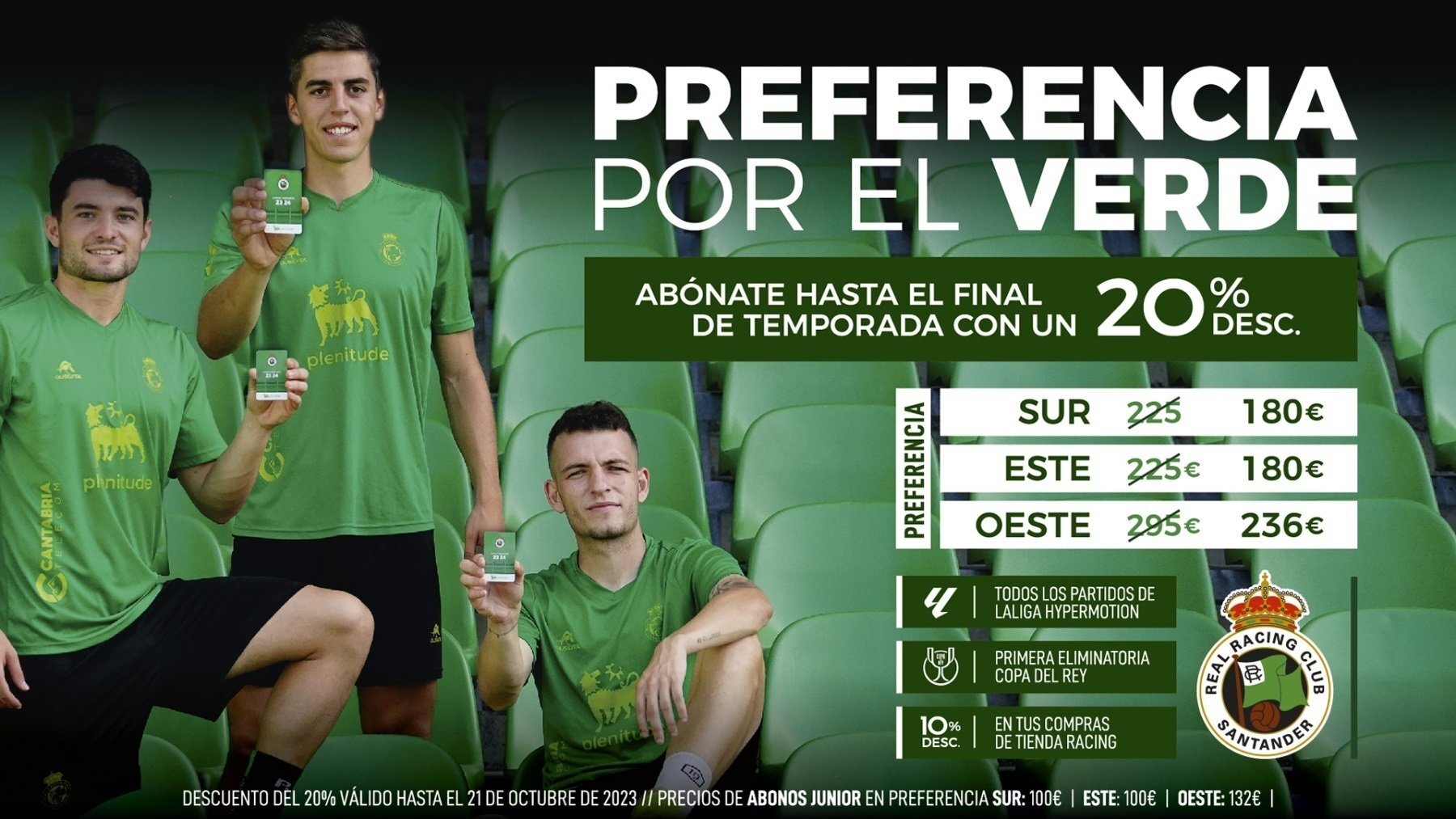 En concreto, el descuento se aplica al precio de las tres primeras gradas que mutan del blanco al verde: Preferencia Sur,Preferencia Este y Preferencia Oeste, con el objetivo de aumentar "la familia racinguista" esta temporada.