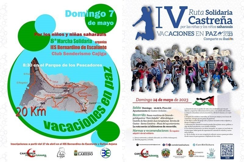 Dos rutas solidarias que se celebrarán en la primera quincena de mayo en Laredo y Castro Urdiales recaudarán fondos para 'Vacaciones en paz', el programa de acogida temporal de menores saharauis de los campamentos de población refugiada de Tinduf.