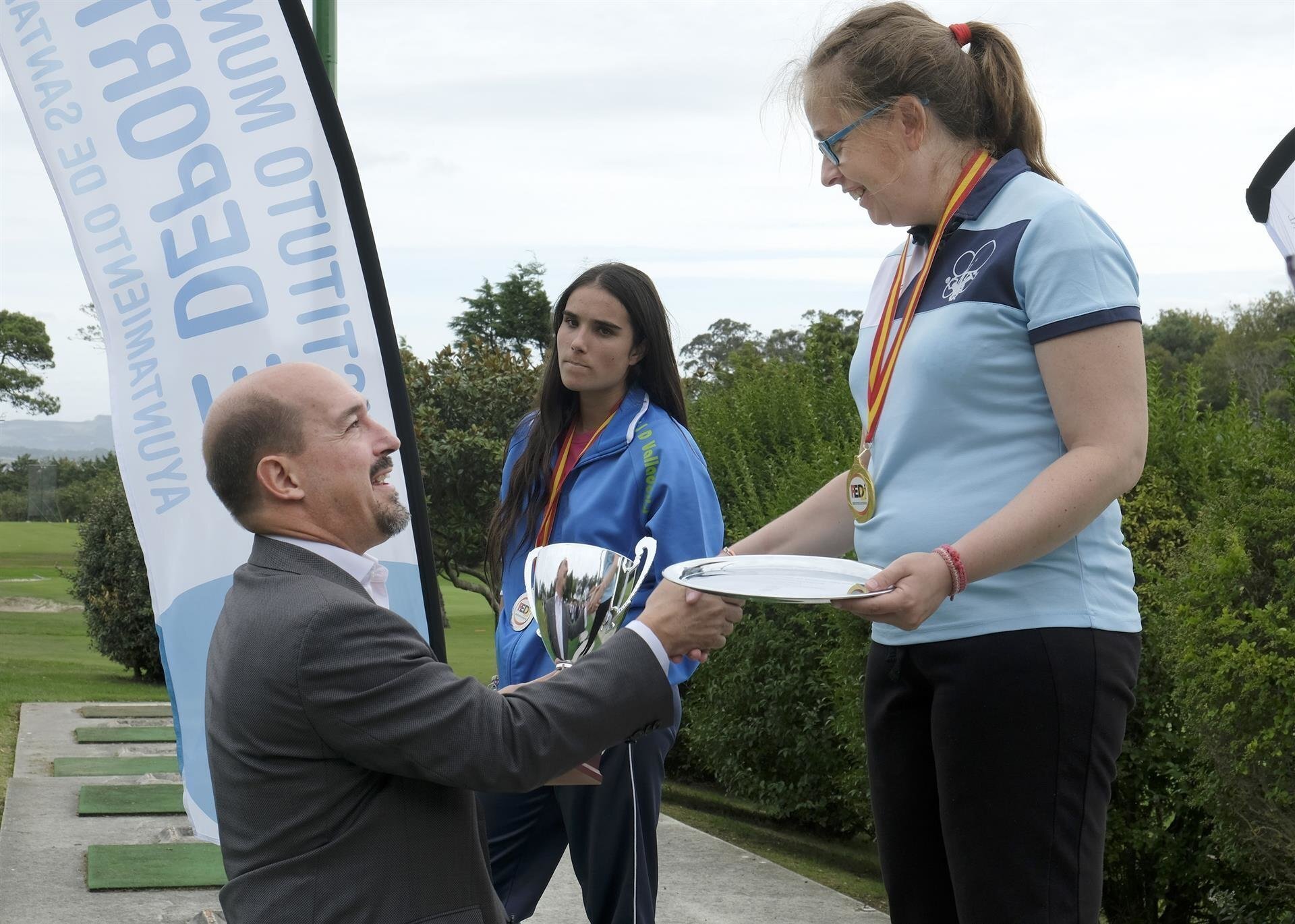 El concejal de Familia y Servicios Sociales, Álvaro Lavín, ha entregado este mediodía los premios del Campeonato de España de Golf Adaptado, que se ha celebrado desde el pasado domingo en el campo municipal de golf de Mataleñas.