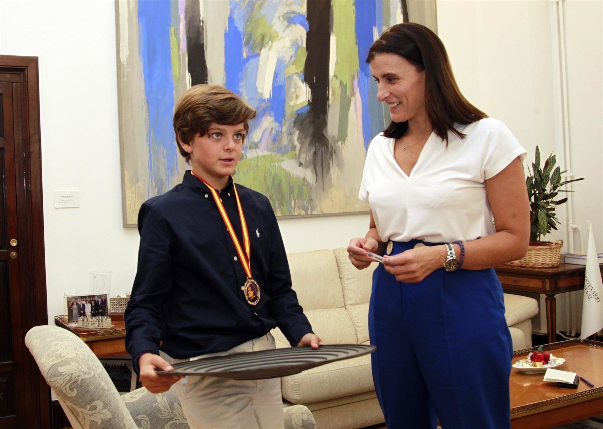 La alcaldesa de Santander, Gema Igual, ha recibido al santanderino Ángel Amo Muro, ganador alevín del Campeonato Nacional de Bateo de Oro, celebrado en la localidad de Navelgas (Asturias).