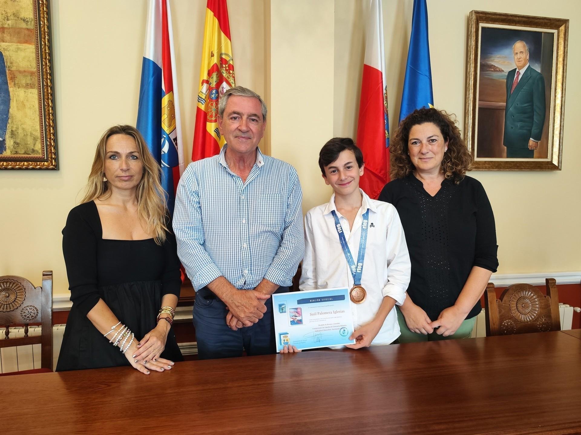 Por estos logros ha sido recibido en el Ayuntamiento, donde el alcalde, Andrés Ruiz, y la concejala de Deportes, Ana Santiago, han compartido este momento tan especial en la trayectoria deportiva del suancino Saúl Palomera.