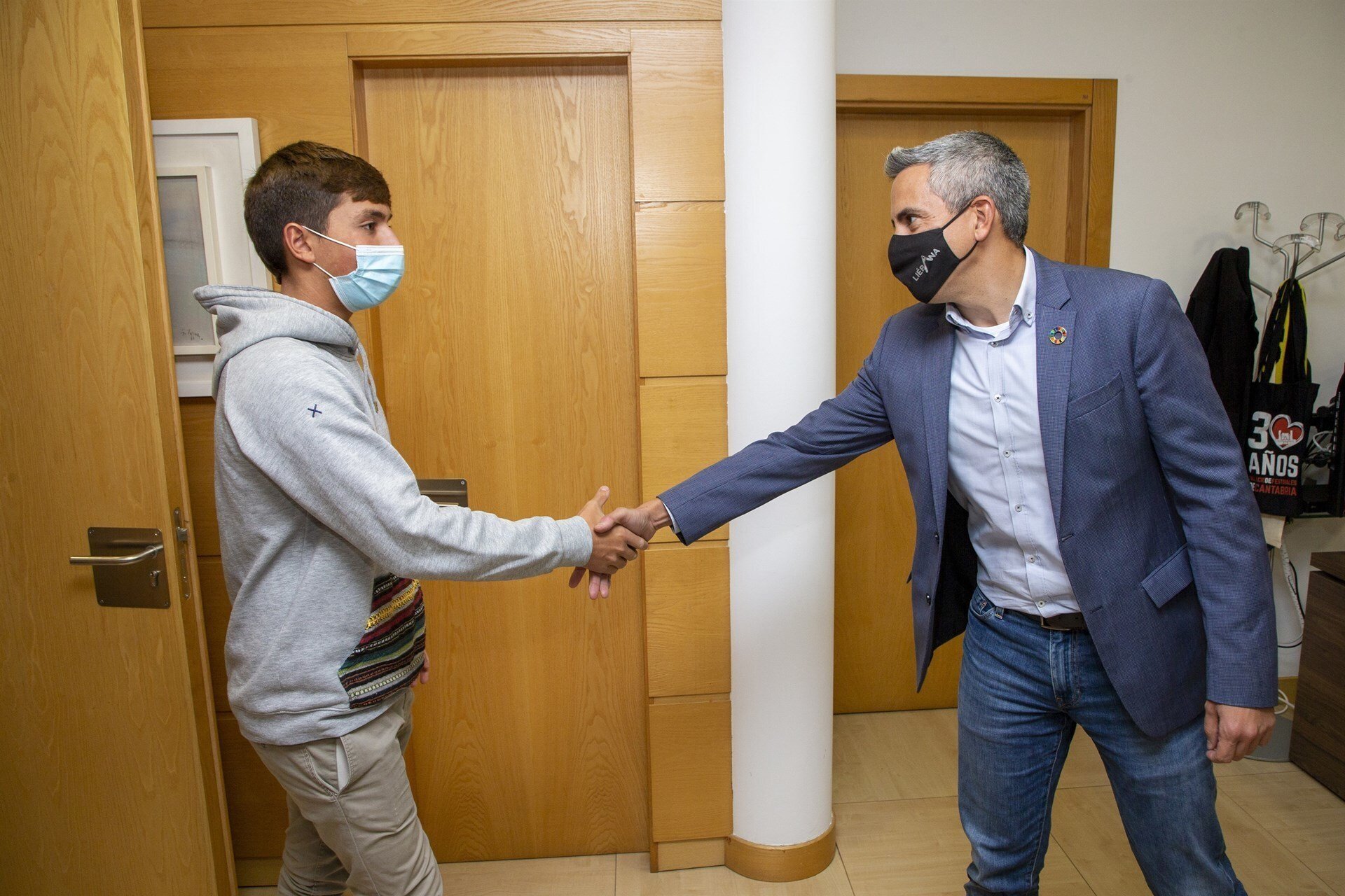 El vicepresidente y consejero de Universidades, Igualdad, Cultura y Deporte, Pablo Zuloaga, ha recibido este martes al cántabro Luis Tausía tras proclamarse campeón del mundo junior de bodyboard al imponerse en la World Cup Gran Canaria Frontón King.
