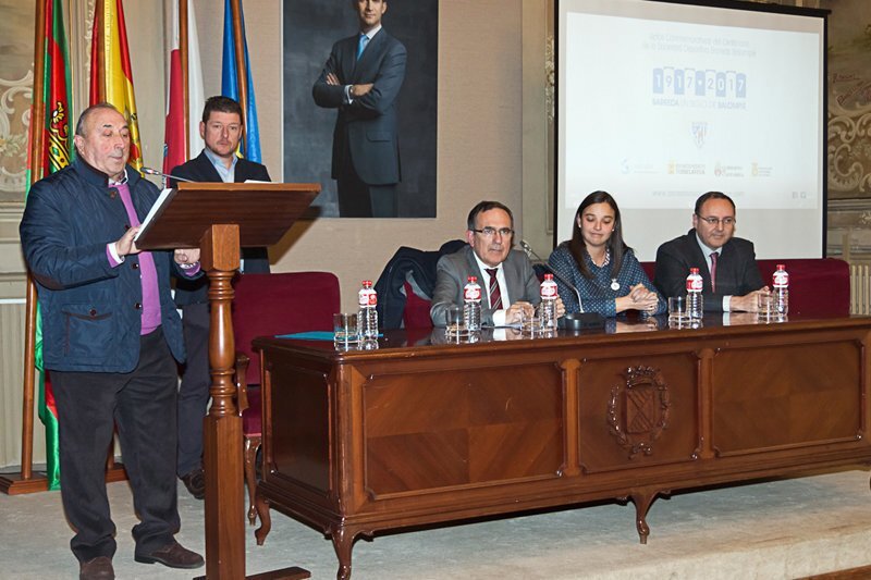 El acto fue abierto por el Concejal de Deportes del Ayuntamiento de Torrelavega D. Jesús Pérez Sánchez, quien afirmó que la intención principal de estas celebraciones es recordar afectuosamente y rendir homenaje a todas las personas que han estado vinculadas al club: aficionados, jugadores, técnicos y directivos. Anunció una serie de intervenciones que se irán desarrollando a lo largo del año, como la publicación de un libro sobre la historia del club que incluirá material fotográfico inédito, el rodaje de un documental, dirigido por Pedro Telechea, sobre la figura del fundador, que recorrerá los más importantes eventos en la historia del club, la celebración de una Gala en el Teatro Municipal Concha Espina y diversos actos deportivo-culturales para todos los públicos. Posteriormente dio paso a la presentación del logotipo, diseñado por Pepe Terán, y que está inspirado en la inconfundible grada de madera del campo del Barreda. El Presidente del club D. José Girón García agradeció el apoyo recibido por la empresa Solvay y las Instituciones y mostró su deseo de que el Centenario fuese motivo de alegría para la afición. Aprovechó la ocasión para invitar a los asistentes, que llenaban el salón de plenos, al primer partido de la temporada en los Campos del Barreda, el próximo domingo 8 de enero. Para esta especial ocasión se han preparado una serie de actos como el descubrimiento de un mural conmemorativo, actuaciones de Malabaracirco y un aperitivo al final del partido. También intervinieron el Alcalde de Torrelavega, D. José Manuel Cruz Viadero y Dña. Zara Ursuguía Gómez, Directora General de Deportes del Gobierno de Cantabria, quienes felicitaron al club y reafirmaron el compromiso y apoyo de las Intituciones al Barreda en su Centenario. Asimismo D. Luis Hervella Valencia, Director de Recursos Humanos de Solvay, puso de manifiesto la vocación social de la empresa con el pueblo de Barreda y con el club desde hace ya cien años. Se podrán seguir los distintos actos a través de la página web oficial del centenario www.barredaunsiglodebalompie.com, facebook y twitter.
