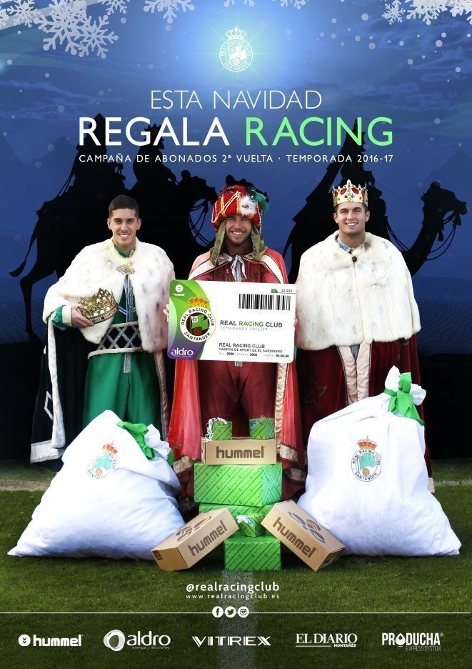 El carnet del Racing para la segunda vuelta de la temporada 2016/17, que presenta una rebaja del 40% respecto a los importes fijados al comienzo del curso, es el regalo perfecto de esta Navidad. Así, es posible pedir a los Reyes Magos abonos para arropar a la escuadra cántabra en los nueve partidos que restan por disputarse en Los Campos de Sport en el Grupo I de Segunda B. Además, el carnet verdiblanco otorga descuentos del 50% en las entradas para el play off de ascenso (en los encuentros de El Sardinero) y del 10% en la Tienda Oficial, en tanto que también permite acceder gratuitamente a los duelos que jueguen como local el filial y el resto de conjuntos de las Secciones Inferiores racinguistas. Los futbolistas del primer equipo Héber, Dani Aquino y Álvaro Peña –protagonistas de la imagen de la campaña- actuarán como emisarios ante los Reyes Magos, a los que trasladarán las peticiones de abonos verdiblancos que incluyan en sus cartas niños y mayores para que éstos, posteriormente, los retiren en las taquillas de Los Campos de Sport: permanecen abiertas de lunes a viernes en horario de 10:00 a 14:00 y de 17:00 a 20:00. Para posibilitar que esta Navidad se regale Racing el club cántabro ofrece carnets desde 76 euros (para adultos en Preferencia Sur pues las altas nuevas en La Gradona de Los Malditos tienen que formalizarse a través de la Asociación de Peñas Racinguistas) en tanto que hay tarifas aún más económicas para aficionados menores de 25 años, jubilados, desempleados de larga duración y discapacitados en silla de ruedas. A estos importes pueden sumarse, además, los descuentos de accionista para los que posean 24 títulos o más.