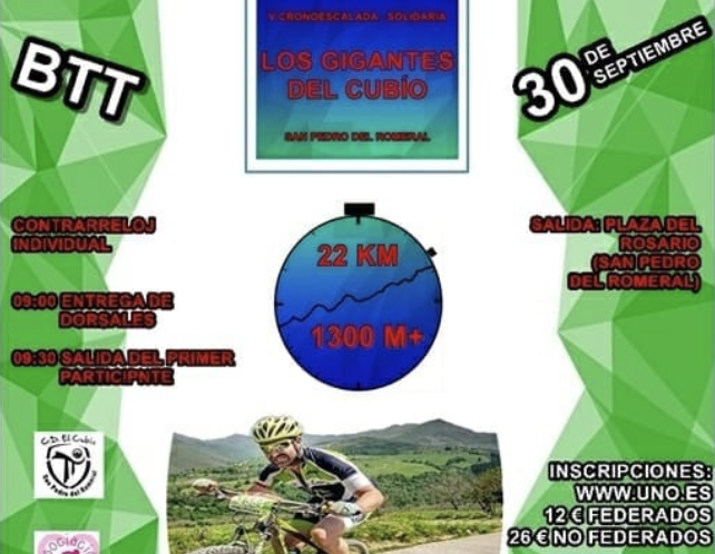 San Pedro Del Romeral acogerá el próximo día 30 de Septiembre la V cronoescalada BTT solidaria, en favor de la Asociación Izara, de 22 Km y con un desnivel positivo de 1600 metros. ¡Aún puedes inscribirte!