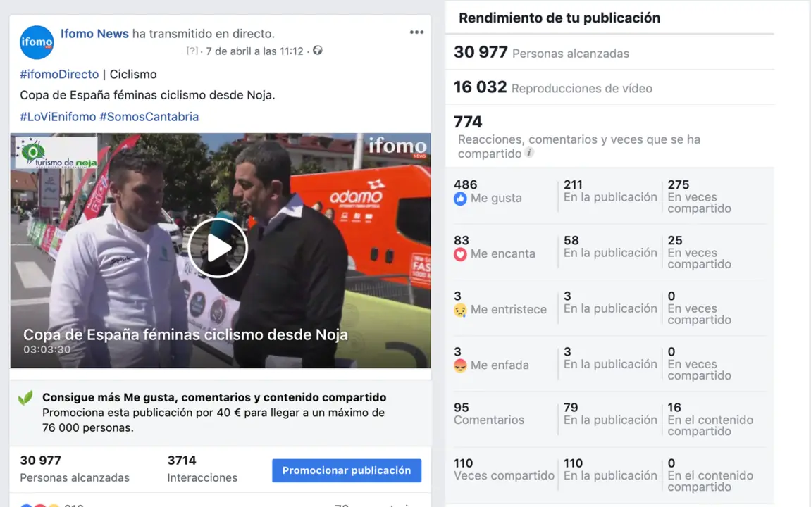 Mas de 30.000 personas siguieron la retransmisión realizada y producida de forma íntegra por ifomo News del IV Trofeo Villa de Noja - Gran Premio Cantabria Deportes, Copa España Féminas Cofidis 2019.