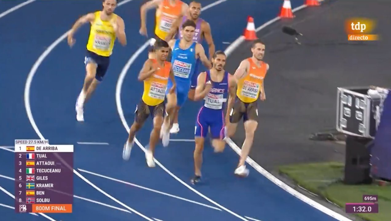 En la pista del Estadio Olímpico, Attaoui rompió a correr en un tremendo esprint en la última curva para remontar hasta la plata del 800, por detrás del francés Gabriel Tual. Álvaro de Arriba, que no aguantó en cabeza, terminó cuarto mientras que Adrián Ben fue sexto.