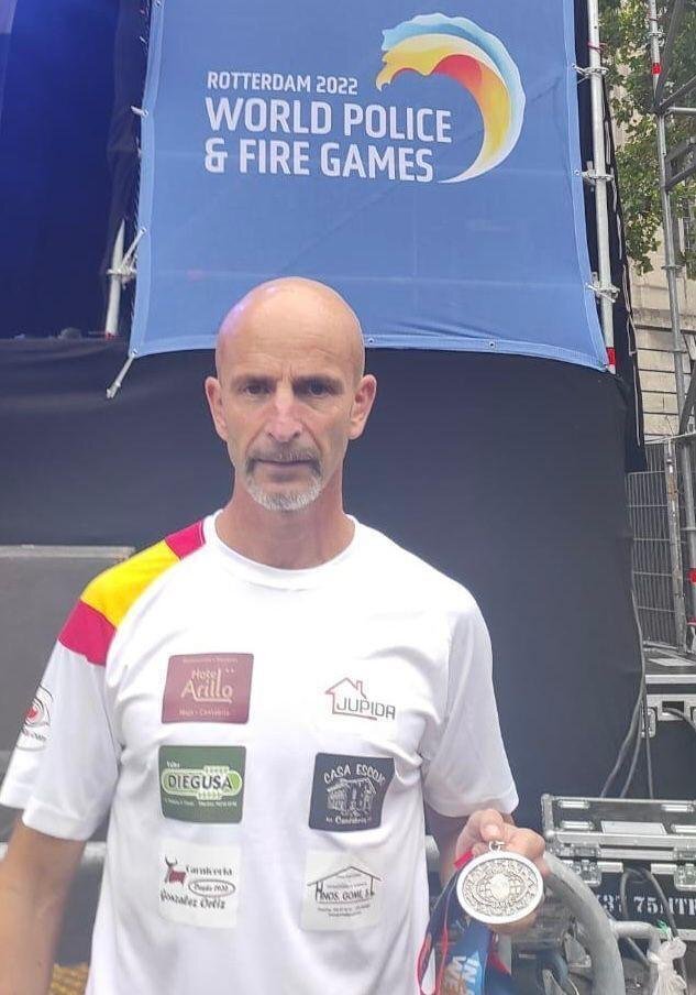 El policía local cántabro Fernando Cerro, destinado en Noja, se alzó este pasado fin de semana con la medalla de plata en la prueba de media maratón, en M50 (más de 50 años), de los Mundiales de Policías y Bomberos celebrados en Rotterdam.