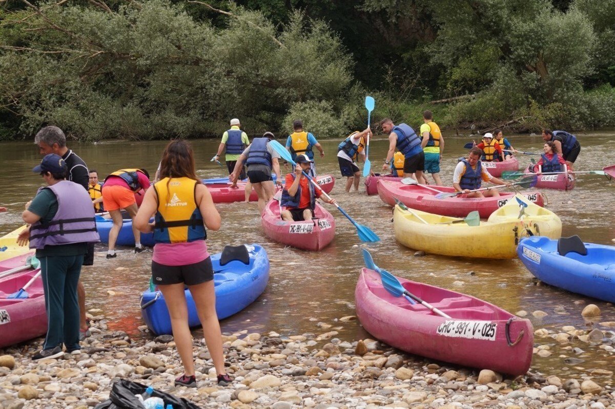 Un total de 39 personas con discapacidad descienden el río Deva en canoa