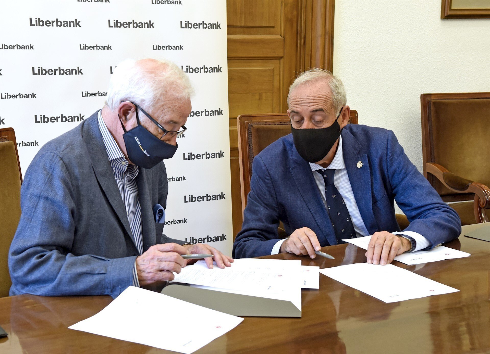 La firma para la renovación del convenio de patrocinio ha corrido a cargo del decano-presidente del Colegio de Economistas, Fernando García Andrés y del presidente de Liberbank, Pedro Rivero.