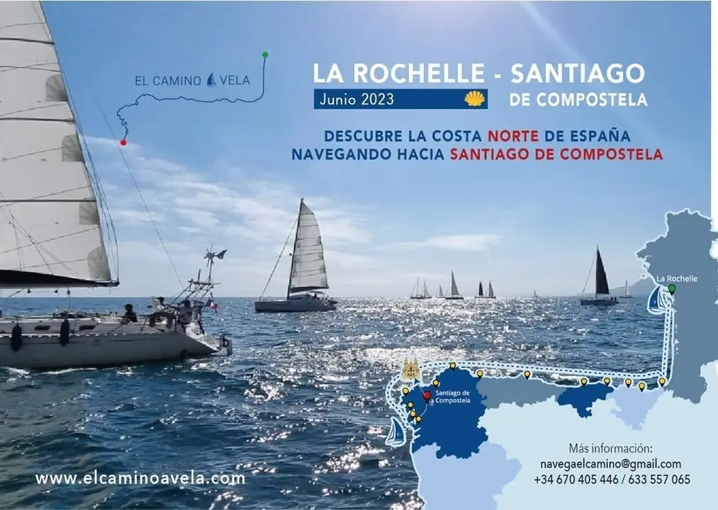 Tras la salida en La Rochelle, los veleros peregrinos recalarán en Hondarribia, Bermeo y Bilbao en Euskadi; Laredo y Santander, en Cantabria; y Gijón en Asturias, para alcanzar las costas gallegas enRibadeo y desde allí a Cedeira, A Coruña, Muxía, Muros, Boiro y Vilagarcía de Arousa, puerto final de la navegación a vela.