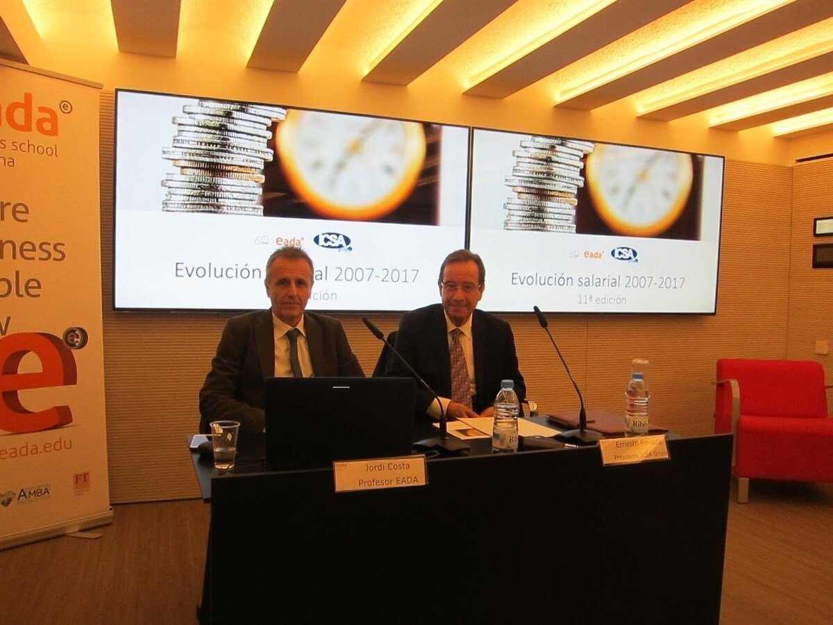 Los salarios en España se han estancado tras tres años con un crecimiento interanual del PIB superior al 3% y una inflación del 1,5%, según un estudio presentado este martes por la escuela de negocios Eada y ICSA Grupo, que muestra que los empleados en Cantabria son los sextos que menos dinero ganan, unos 19.683 euros al año, lo que supone 3.110 euros menos que la media del país.