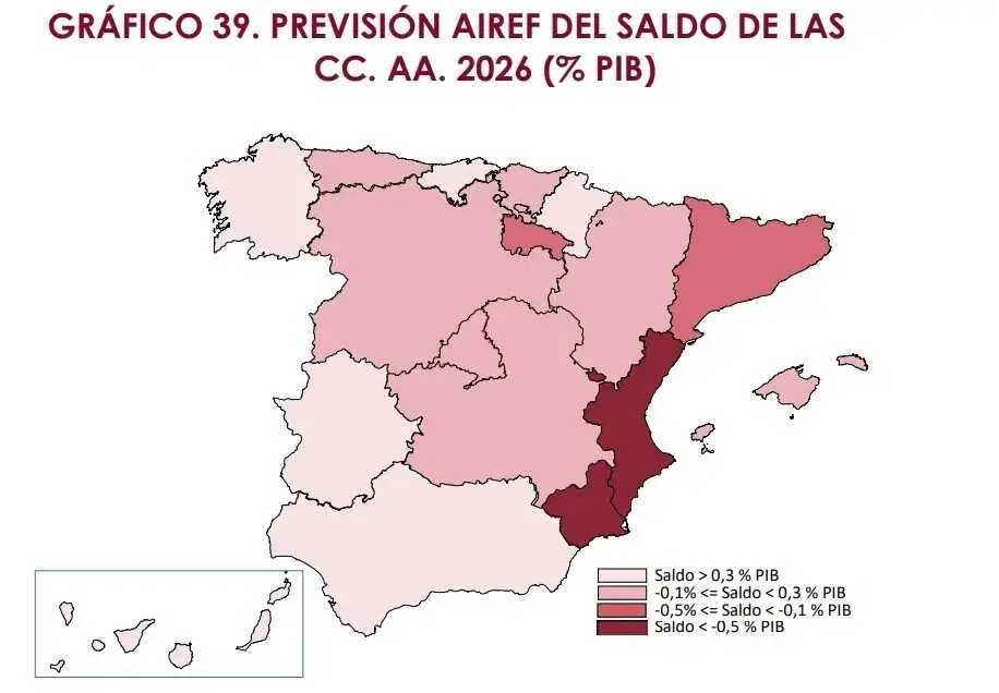 Por su parte, la Comunidad Autónoma prevé alcanzar un superávit de 0,5% del PIB en 2025 y del 0,4% en 2026, si bien el proyecto de presupuestos contempla un saldo de equilibrio en este año.