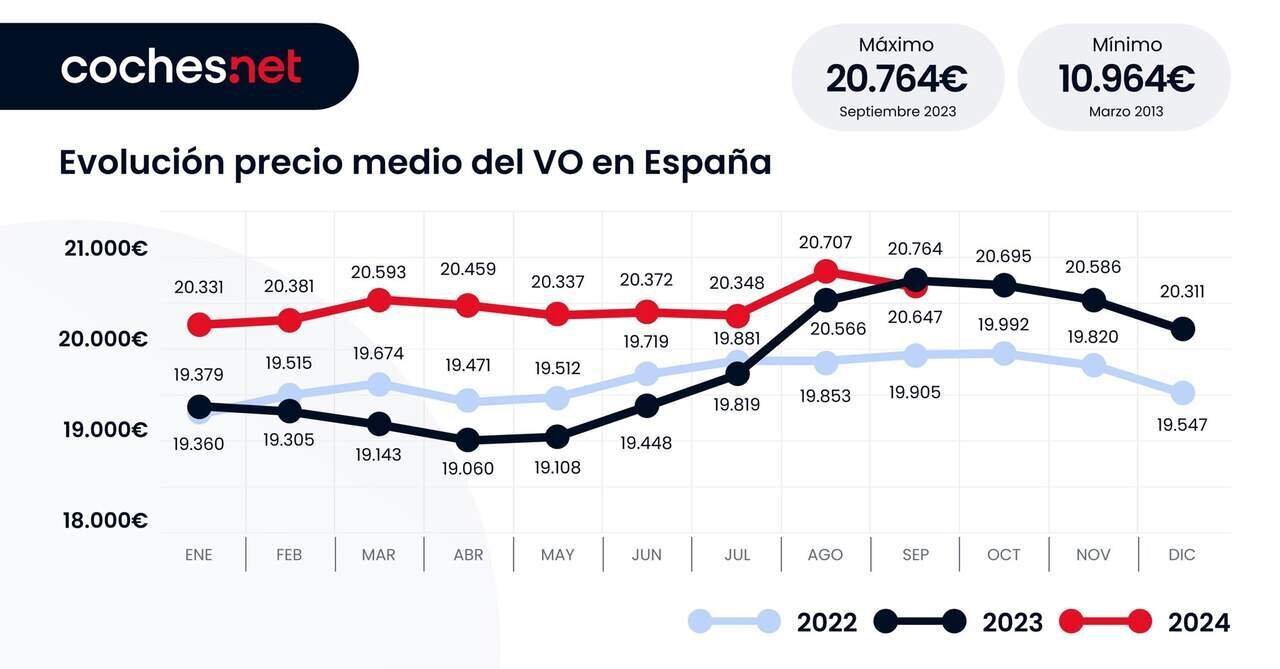 A pesar de la disminución del precio en la comparativa interanual en septiembre, este precio se acerca al récord absoluto, que se registró en septiembre de 2023, alcanzando los 20.764 euros.