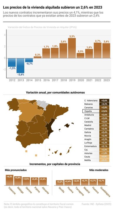 Los contratos de alquiler nuevos subieron un 4,1% en 2023 respecto al ejercicio 2022 y los existentes, un 2,1%.