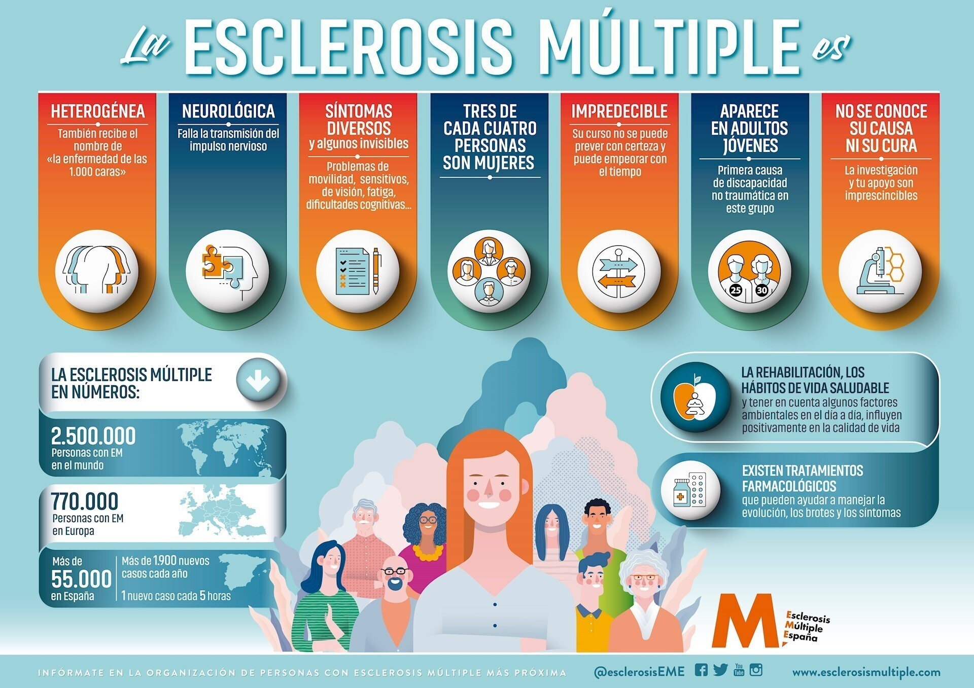 'Me conecto, nos conectamos' es el lema elegido este año con el propósito de que nadie se enfrente en soledad a la Esclerosis Múltiple, enfermedad que padecen en España 55.000 personas, el 75% mujeres, y es la primera causa de discapacidad no sobrevenida en población joven.
