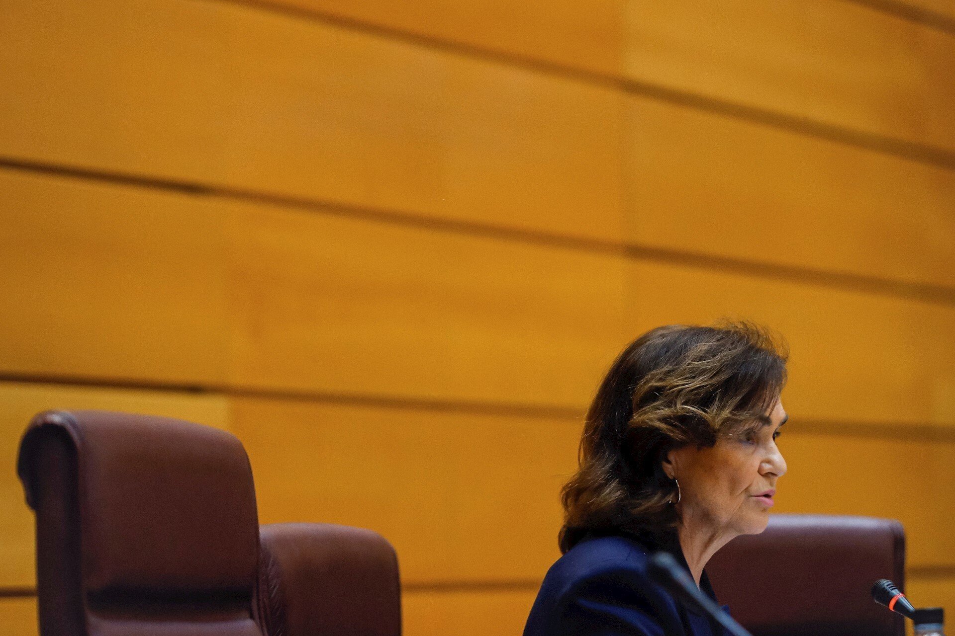 La vicepresidenta del Gobierno, Carmen Calvo, ha apostado por afrontar "cuanto antes" la reforma del Senado, aunque ha recordado que requiere amplias mayorías porque exigirá cambios en la Constitución, y ha asegurado que el PSOE defiende una Cámara Alta en la que participen los gobiernos autonómicos.