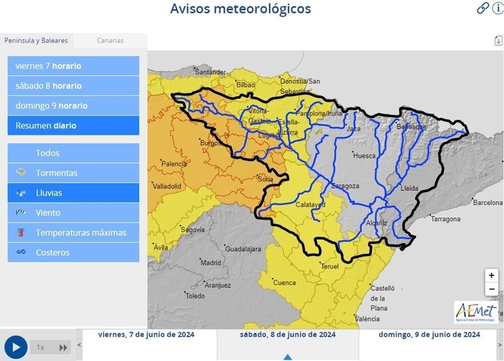 Por esta razón, la CHE también ha advertido de la posibilidad de crecidas súbitas "importantes" de carácter local en barrancos y cauces menores en esos sectores de la cuenca del Ebro, principalmente en aquellas áreas donde descarguen los chubascos más intensos.