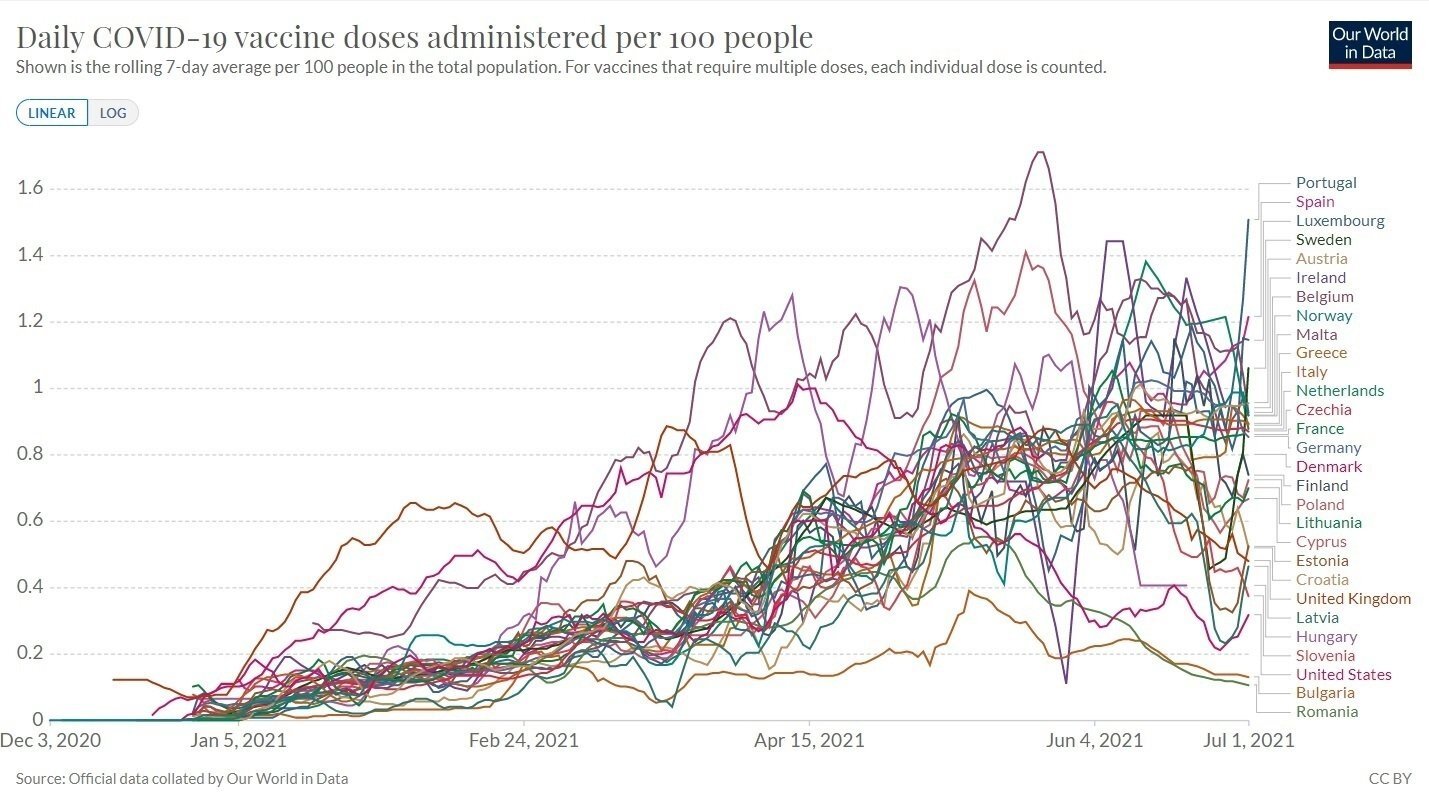 No obstante, a nivel de los 27 de la UE, España se situaría en segundo lugar, sólo siendo superada por Portugal, a fecha 1 de julio.