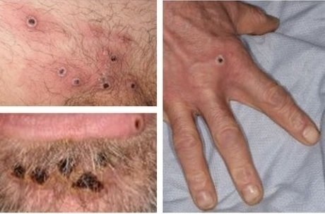 Las más frecuentes fueron las infecciones bacterianas secundarias y las úlceras bucales. Se han caracterizado las manifestaciones clínicas en 406 casos. La mayoría presentaron exantema anogenital (65,8%) y en otras localizaciones (53,9%), fiebre (55,9%), astenia (41,4%) y linfadenopatías localizadas (40,6%).