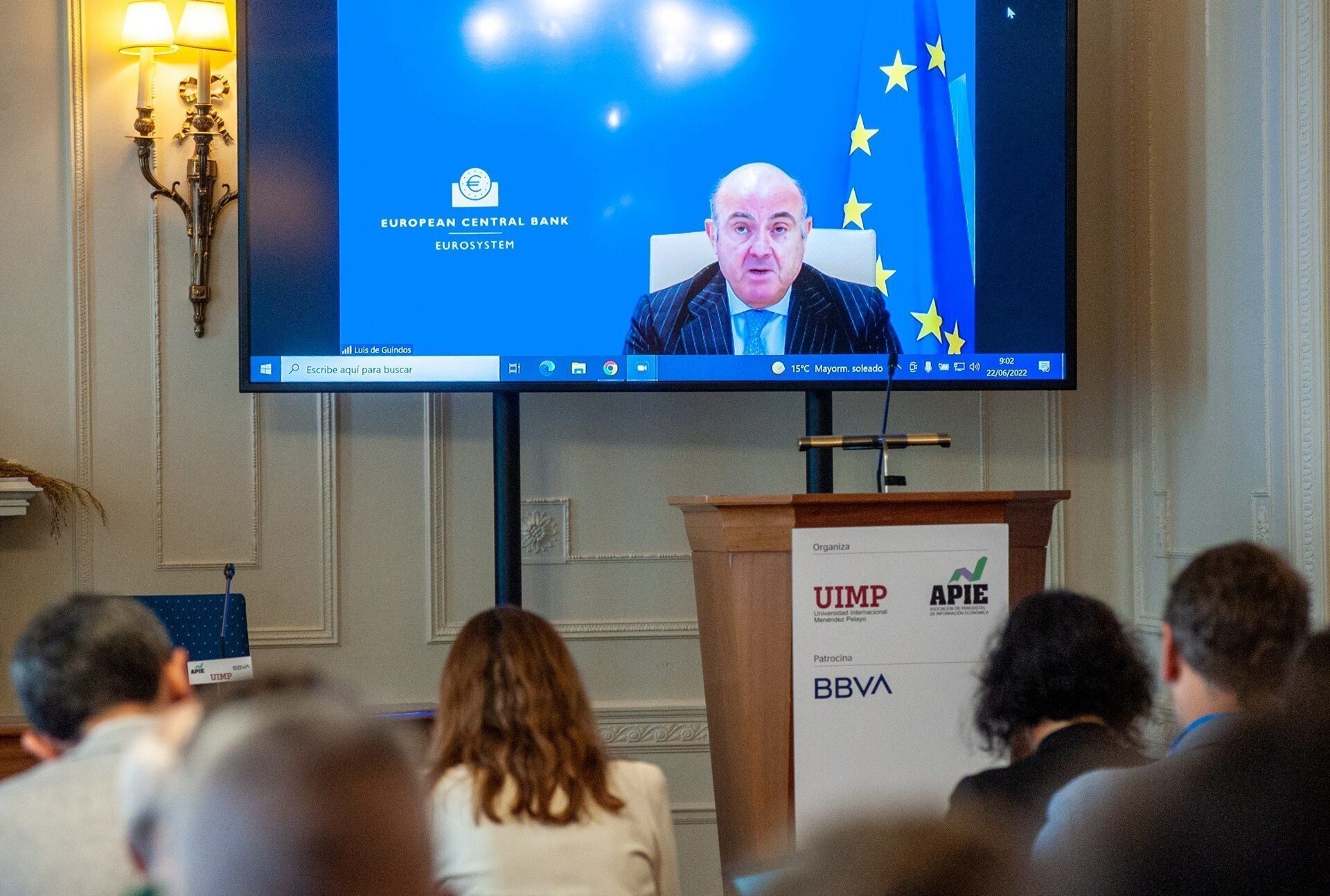 Durante su intervención por videoconferencia en el curso de verano organizado por la Asociación de Periodistas de Información Económica (APIE) en la Universidad Internacional Menéndez Pelayo (UIMP), Guindos ha recordado también que las previsiones macroeconómicas del BCE, publicadas la semana pasada, contemplan en su escenario base un crecimiento superior al 2% los próximos años, mientras que en el adverso se prevé una contracción del PIB del 1,7% en 2023.
